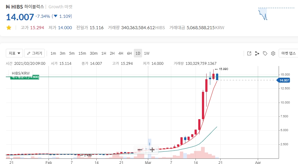 03월 20일자 하이블럭스 가격은 14.6원이다