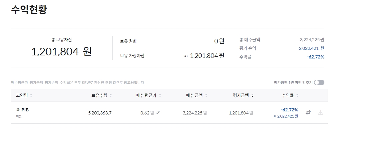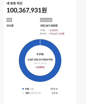 피블 0.3원때부터 소량금액 집어넣고 2년이상 존버를 통해 마침내 승리(?)를 이뤄냈다.