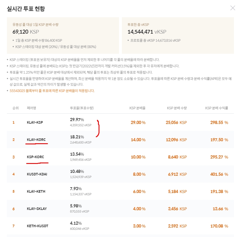 이유는 단순하게 오르빗체인쪽의 투표율이 높은편이기 때문이다 1위가 클레이튼/ksp지만