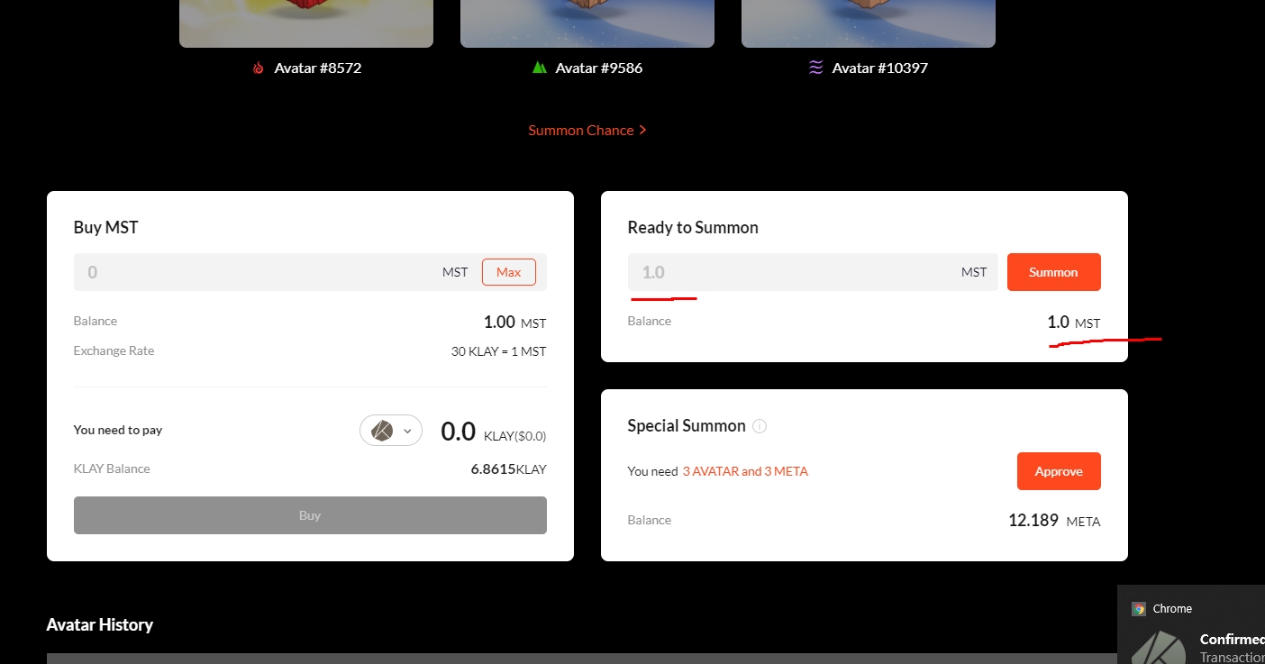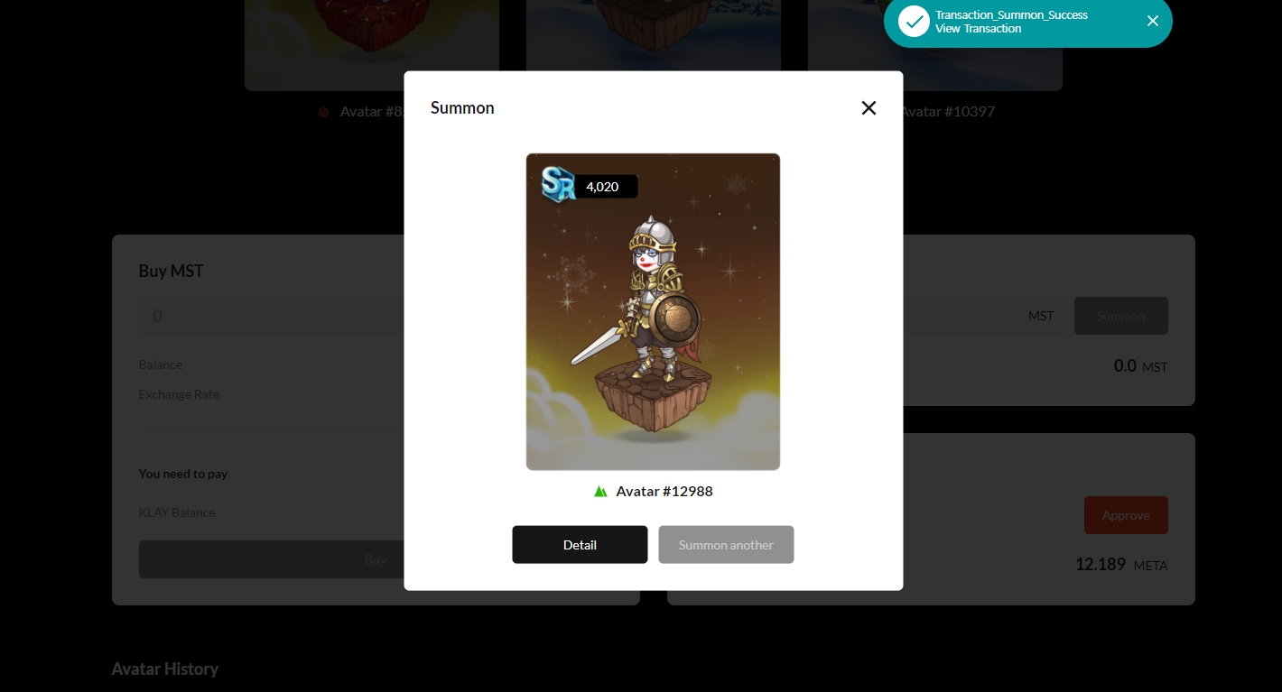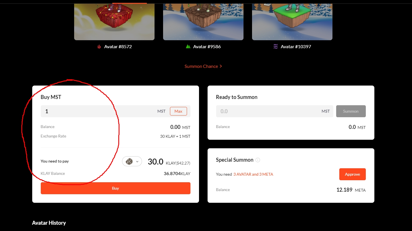 MST - Klaymeta Summon Token <- 소환수를 구매하는 가격
