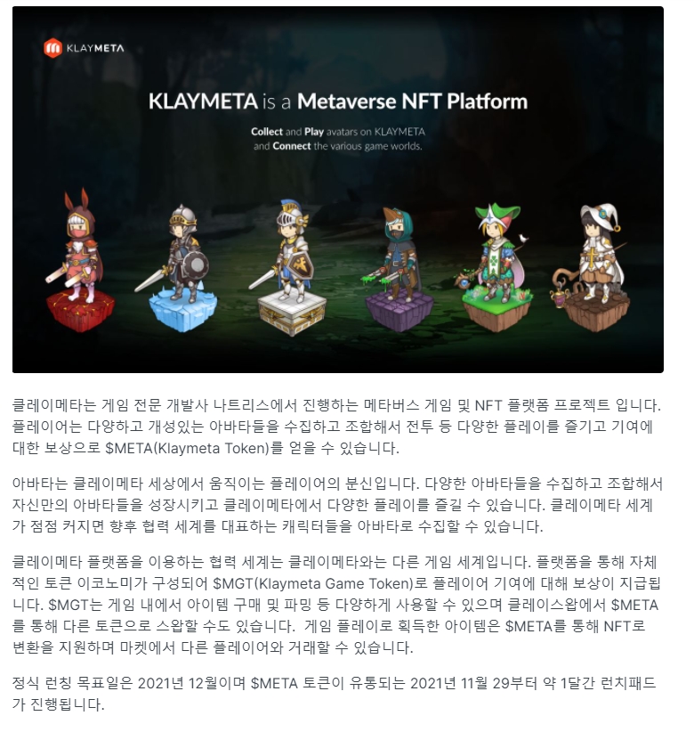 아바타 소환을 위한 토큰이며 클레이메타 홈페이지에서 30 $KLAY로 구매할 수 있습니다.
