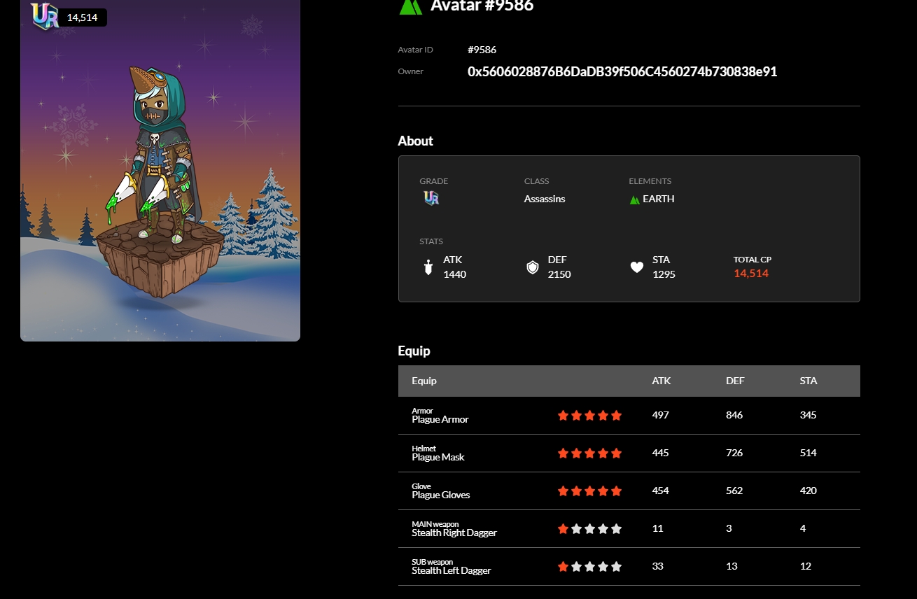 NFT로 클레이메타에서 플레이어의 분신과 같은 아바타입니다. 아바타는 MST로 소환하거나 한정 구매로 얻을 수 있습니다. KLAYmeta 마켓에서 거래할 수 있습니다.