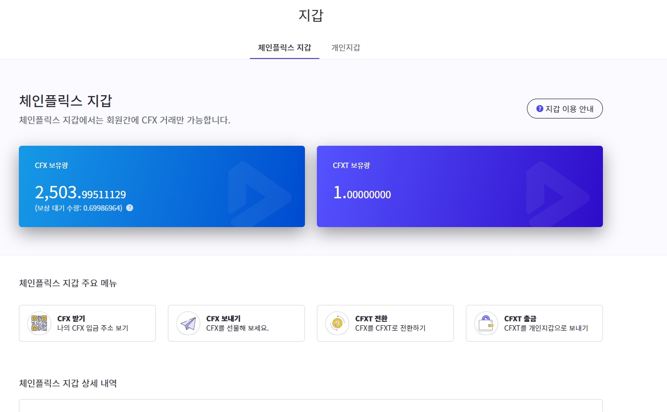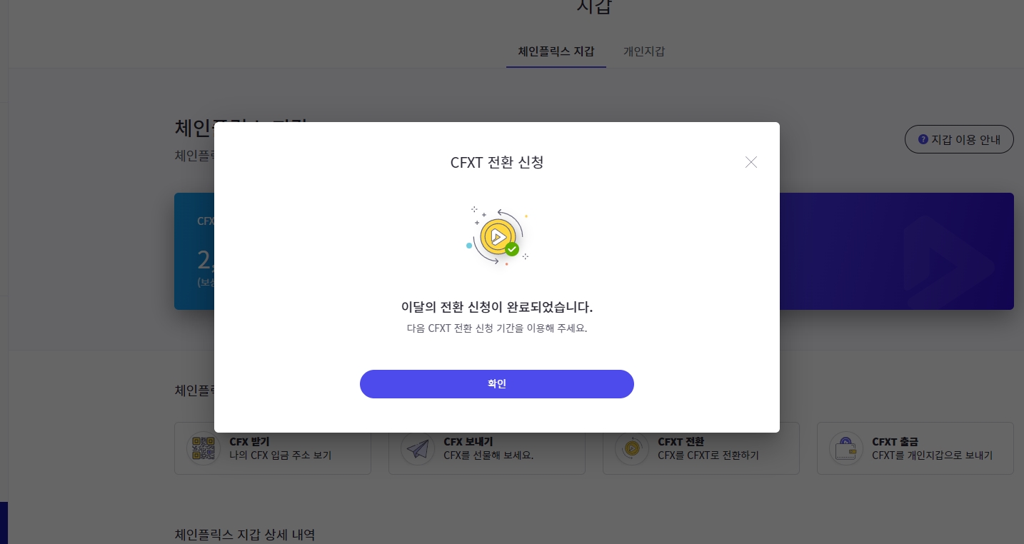 전환된 CFXT코인은 카이카스에 딱 나와진다.