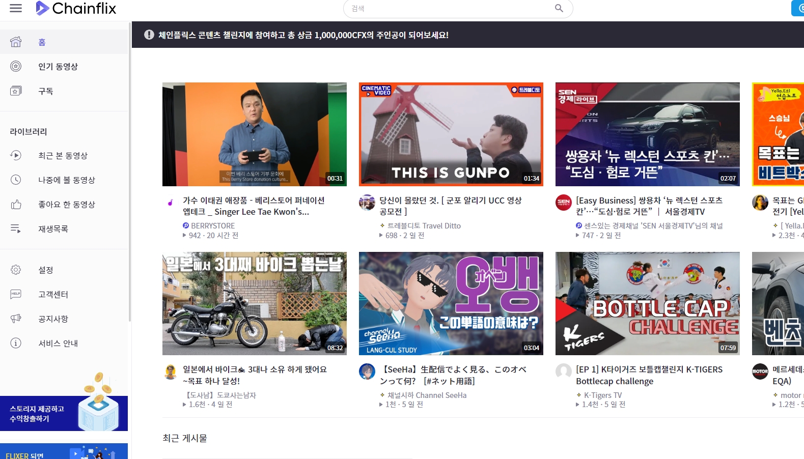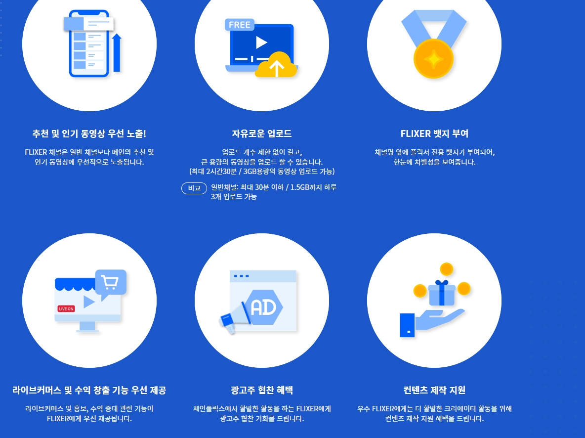 플릭서가 되면 뱃지나 광고 인기동영상 우선 노출등 괜찮은 혜택을 준다.